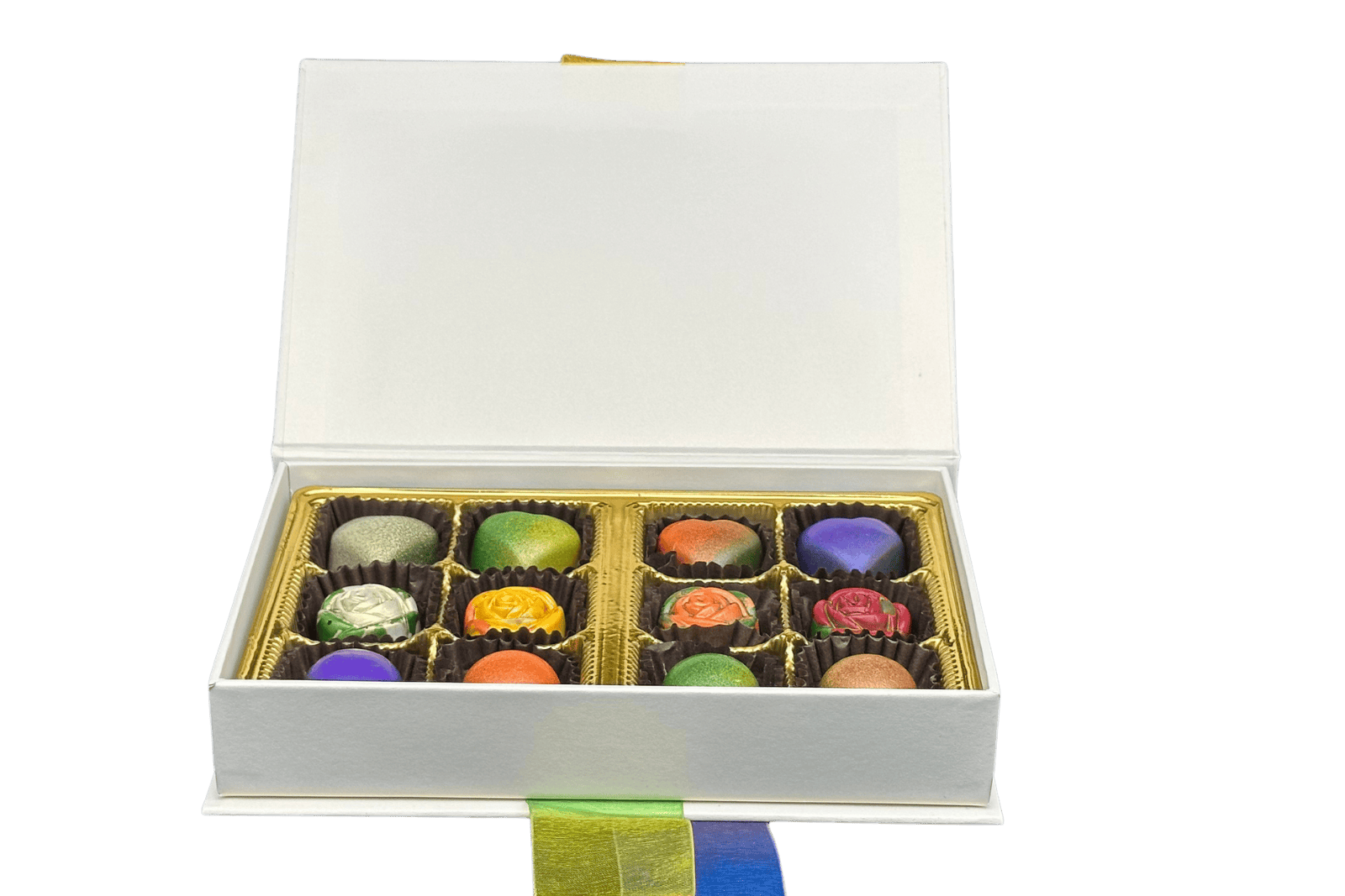 The Rose Collection features rose-shaped chocolates with vibrant fruit flavors and smooth Belgian chocolate. The deluxe 8-piece highlights fresh fruit purΓ©es for a bright, balanced experience. (Special Order Only).